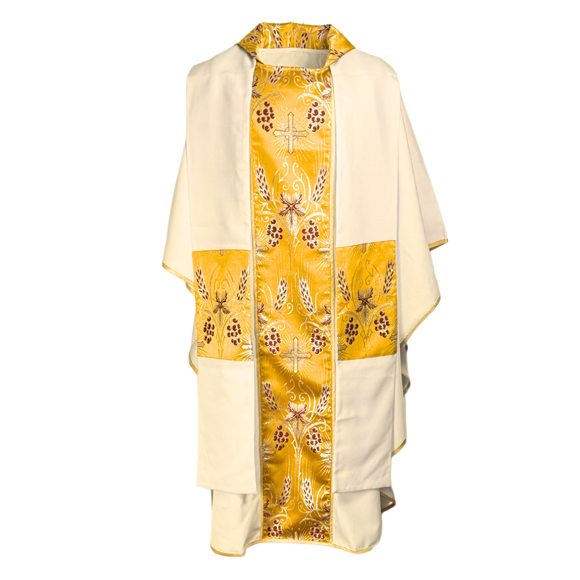 Casulla Sacerdotal con tira en tela brocada y estola a juego.